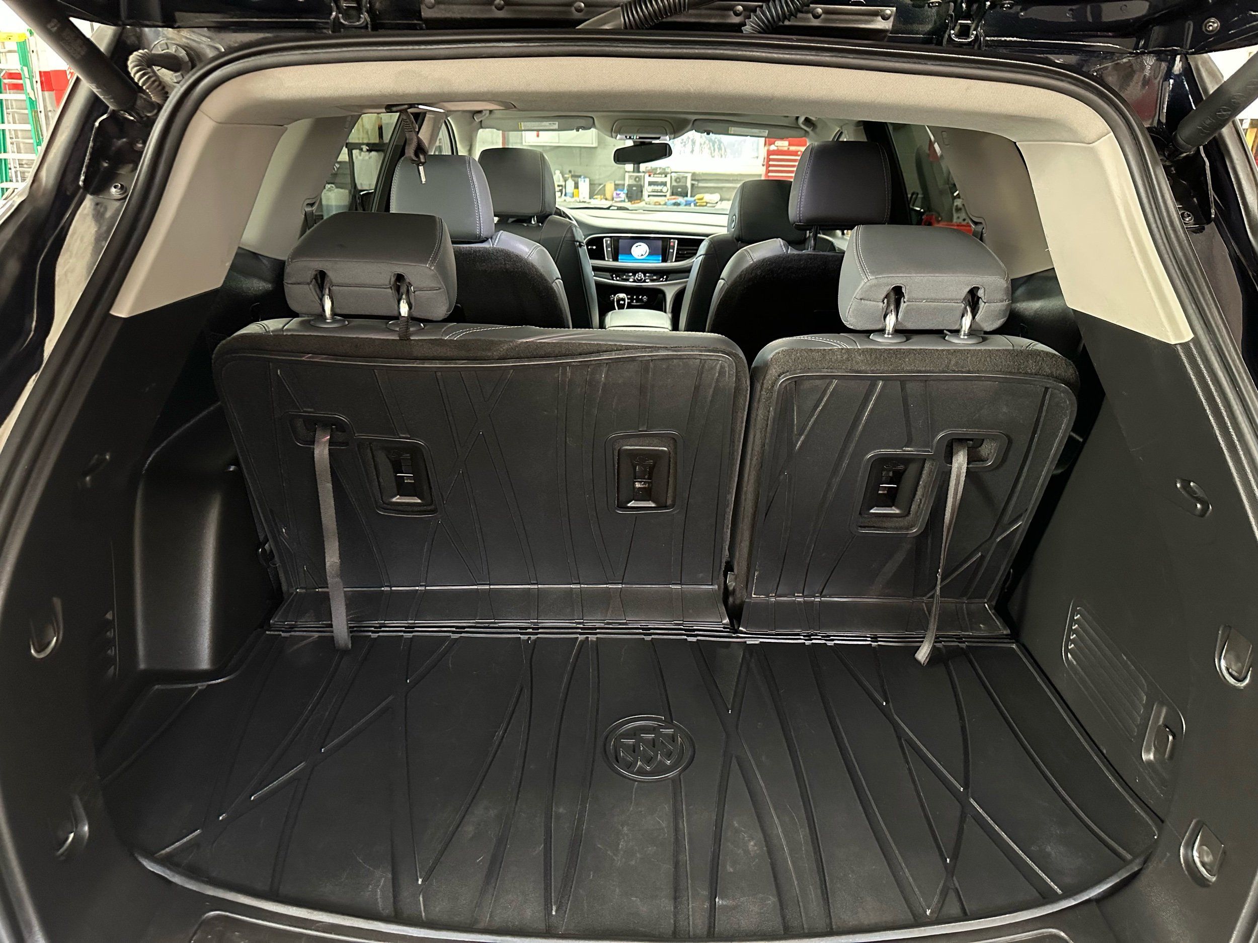 Third-row seatback upholstery: Carpet third-row seatback upholstery